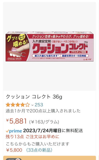 ↑ちなみにこの入れ歯安定剤は定価は1300円ほど。ですが、生産終了で