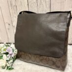 コーチ coach ショルダー シグネチャー レザー PVC ブラウン ロゴ