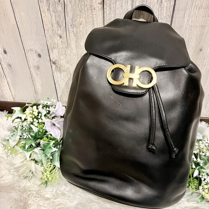 美品】サルヴァトーレ フェラガモ ガンチーニ リュック レザー ブラック